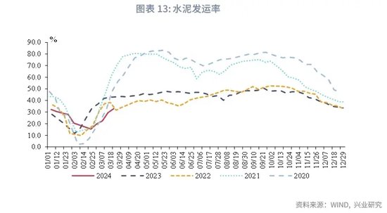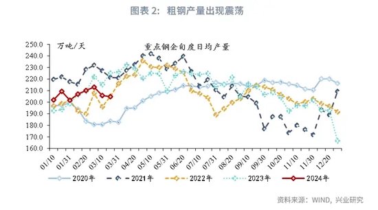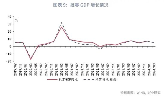 2024年3月主要工业品开工率出现季节性反弹。粗钢产量随着需求放缓出现震荡;全钢胎与半钢胎开工率出现春节后的季节性反弹;PTA上下游开工率出现分化,下游开工强于上游;煤炭日耗同比维持小幅正增长;房地产数据虽出现季节性反弹但同比表现则仍有待提振。考虑到今年1-2月工作日较多的影响,工业增加值3月当月同比或较2024年1-2月累计同比下降1.8个百分点。