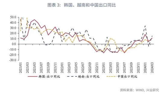 在出口方面,全球制造业景气回升叠加工作日天数减少共同影响下,3月出口增速或现回落但仍有望维持正增长。从全球需求看,3月美国制造业PMI较前月上行0.3个百分点至52.5%,为2022年5月以来的最高值,美国制造业景气进一步抬升;韩国3月前20日出口同比增长11.2%,越南3月出口同比较上月回升19.1个百分点至15.0%,亚洲主要出口型经济体出口维持两位数以上正增长亦验证全球需求回升。从工作日天数看,2024年3月工作日天数21天,较去年同期减少2天,这或拖累3月出口同比读数。