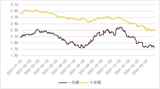 图表4 不同期限国债收益率(%)