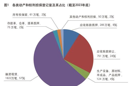 服务性登记适用性凸显,深化动产融资多元化创新成效显著。目前,七大类登记业务中融资租赁、应收账款质押、保理业务登记量位居前三,占比约90%。其中,融资租赁登记业务超八成的租赁物为车辆和机械设备。在“双碳”目标背景下,以光伏、新能源汽车为主要租赁物的绿色租赁业务近年发展迅猛。应收账款质押和转让登记占登记总量的33%。生产设备、原材料、半成品、产品抵押登记业务经过两年多过渡期已覆盖全国所有省份,新增登记业务量日趋稳定,实现了市场平稳过渡。存款单、仓单、提单质押登记逐年增加,参与仓单质押业务的市场主体数量不断攀升。其他动产和权利担保登记业务的担保物种类日益丰富,排污权、生物活体抵质押等各类创新业务不断涌现,人民银行各分支机构积极对接当地相关部门出台政策,指导商业银行因地制宜创新动产融资模式。