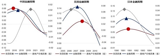 图2 中美日金融周期、信贷因素与房地产价格因素关系
