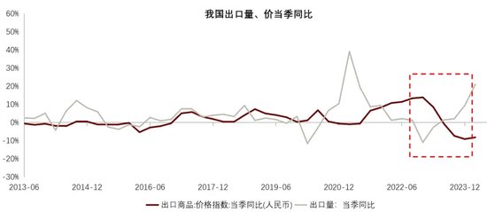 图4 中国出口量、价当季同比