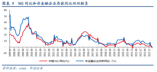 4月M2同比7.2%,较3月M2同比回落1.1;M1同比-1.4%,是剔除过年期间以外的首次同比转负。