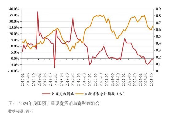 当前我国经济处于企稳向好的态势,但复苏的基础尚不牢固。无论从促进居民消费、企业投资,还是化解房地产、地方债务风险的角度出发,宽货币与宽财政的协调发力仍是2024年政策取向。