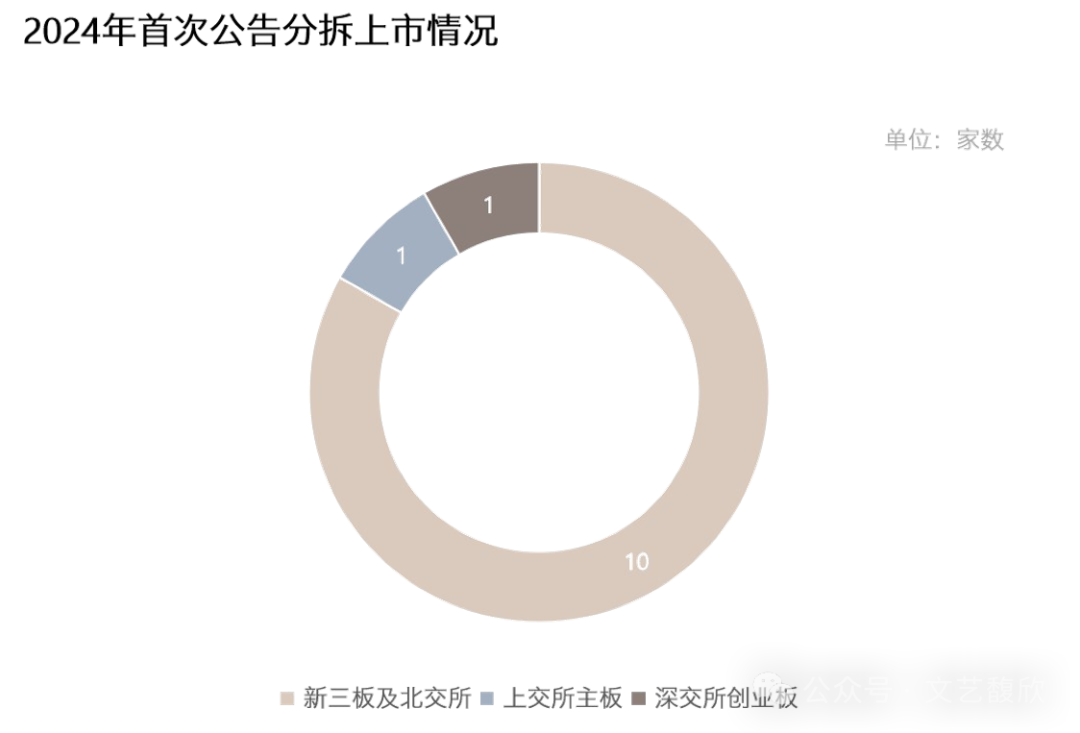 2024年以来,共计12家企业公告分拆上市,其中10家拟定申请新三板挂牌及北交所上市,其中卧龙电驱(600580.SH)与辰欣药业(603507.SH)均为“知难而改”,从深主板终止分拆后申请新三板挂牌,但借助政策红利空间下的“A拆北”能否成为“A拆A”的成熟替代方案仍有待进一步商榷。
