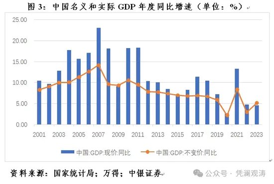 拉长时间看,虽然2024年5月M2同比增速为有数据以来新低,但2020~2024年同期复合平均增长9.8%,略高于新冠疫情前五年(2015~2019年)同期复合平均增长9.7%(见图1)。而且,彼时名义GDP五年复合平均增长8.9%,当下2020~2023年四年复合平均增速仅有6.3%(见图3)。M2增速与名义GDP增速的缺口扩大,也部分反映了当前货币信贷增长由供给约束向需求约束的转变。