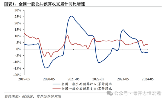 财政收支是反映经济运行情况的“晴雨表”。2024年一季度中国经济实现了开门红,进入4月、5月经济指标出现分化,经济运行既有亮点又有隐忧。从经济动能看,主要是服务业继续恢复、基建投资发力、高端制造持续升级和出口超预期,但房地产投资、销售面积累计同比降幅仍继续扩大。反映到财政上,土地出让收入下滑、减税降费导致宏观税负下降、地方化债严控新增债务、“三保”压力、多元目标考核引发支出责任膨胀等多方面因素导致地方财政紧张。