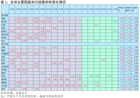 2022年以来,面对普遍的高通胀问题,各国不得不以压缩需求的方式为通胀降温,以美联储为首的全球央行竞相加息,仅有中国、俄罗斯、土耳其等少数国家处在降息的反周期中。不过2023年下半年以来,随着各国经济减速与通胀降温,各国货币政策收紧先后见顶。