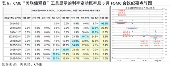 预计英国央行即将迎来降息。与欧元区相比,目前英国经济也在边际好转,整体通胀达标但核心通胀尚有距离,或许是出于大选期间降低不确定性的考虑,银行央行对于6月与欧洲同时降息持谨慎态度。7月4日结束的英国大选,工党以较大优势重夺执政党地位,随着英国的地缘政治变数告一段落,预计8月1日英国央行存在较大可能开启首次降息,并保留在后续继续降息1次的可能性。