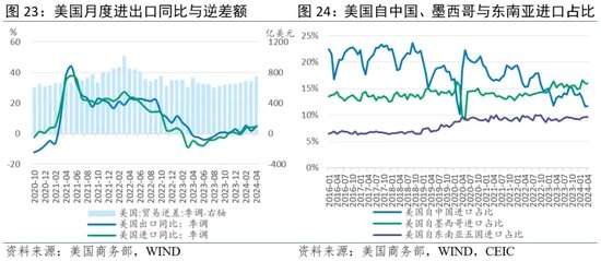 近年来拜登政府通过对中国贸易和产业链施展遏制措施,以及通过《基建法案》《通胀削减方案》《芯片与科学法案》等政策,希望鼓励制造业回流美国,促进供给曲线修复,并摆脱对中国的依赖。从效果来看,中国企业借助美国友岸(东南亚等国)和近岸(墨西哥)进入美国,使得美国的制造业回流本土计划有所折扣。