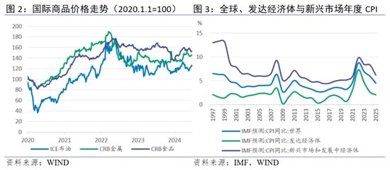 国际商品价格的波动中枢开始趋于稳定。在经历了2020-2021年的大幅上升,以及2022-2023年的快速回落后,国际大宗商品价格逐步进入新的均衡中枢,并呈现中幅波动。能源价格上行有顶,下行有底,对各国整体通胀水平的干扰也有所下降。