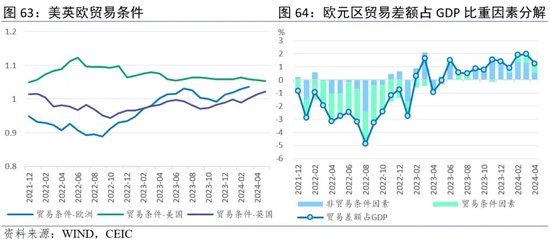 贸易条件保持恢复,但非贸易条件因素也保持增长。从出口价格指数/进口价格指数衡量的贸易条件指数来看,2023年12月以来欧元区贸易条件继续恢复,对贸易平衡保持正贡献。此外,非贸易条件因素也在保持增长,贡献超过了贸易条件因素,表明欧元区面对的外部需求切实得到了改善,这与今年以来全球贸易复苏趋势保持一致。
