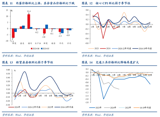 CPI环比降0.2%,略低于季节性。核心CPI降0.1%,继续弱于季节性。从具体分项环比来看,1)食品价格下跌0.6%,主要受果蔬等供给充足影响,猪肉供给改善,价格上涨11.4%。2)汽油价格下降。3)核心价格层面,房租价格上涨0.1%,较季节性偏弱;消费有待提振、竞争压力增大,叠加“618”促销等影响,汽车、家用器具价格跌幅扩大。临近暑假出行增多,相关价格上涨。