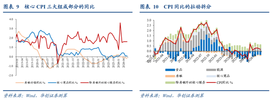 CPI低于市场预期,除蔬菜、水果等部分农产品跌幅较大之外,耐用品价格降幅超预期以及房租价格持续低迷,导致核心价格继续弱于季节性,是CPI不及预期的主要因素。环比来看,房租环比涨0.1%,交通工具跌1%,家用器具跌1.2%,酒类价格跌0.6%,旅游价格跌0.8%,均较为明显地弱于往年同期水平。CPI环比的支撑因素主要依靠供给改善的猪肉,价格大涨11.4%。