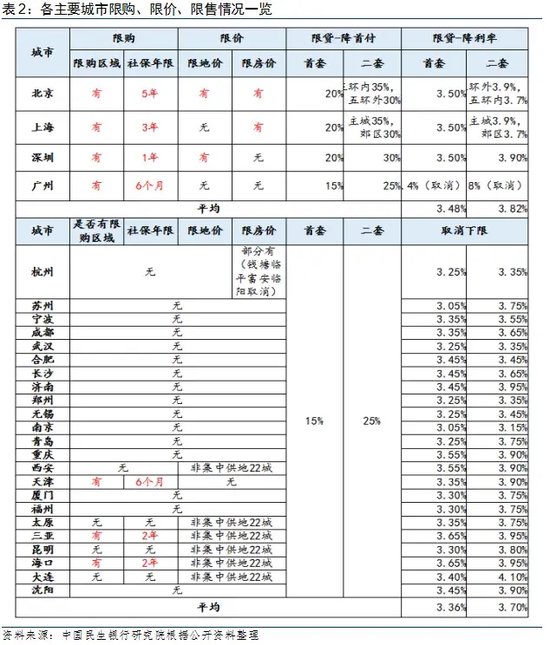 2024年政策的第三个特点是供需两端优化政策,统筹各部门形成良性循环。需求端继续扩围降本,全国范围内降低购房成本。从1998年房改以来,首套房、二套房首付比为最低为1999年2月的20%和20%,此次全国范围内降低首付比例,首套房降至15%,突破首套房首付比历史下限,二套房也接近历史低位,最大程度降低了购房者门槛,意味着同样的首付比能购买更大的房子。供给端优质地块推出、高品质住房供给。一方面,各地政府加大核心优质地块供给,为更多高品质住房提供优质土地保障;另一方面,优化郊区住宅项目容积率1.0限制、优化项目价格限制等,这些政策优化将更有利于企业打造高品质产品。统筹方面,由住建部和自然资源部从项目建设方面进行统筹,人民银行和金融监管总局从降低首付和商贷和公积金贷款利率组合发力,通过保障性住房再贷款支持各类项目施工,四部门形成政策、职责、资金、资源的循环,统筹支持房地产市场平稳健康发展。