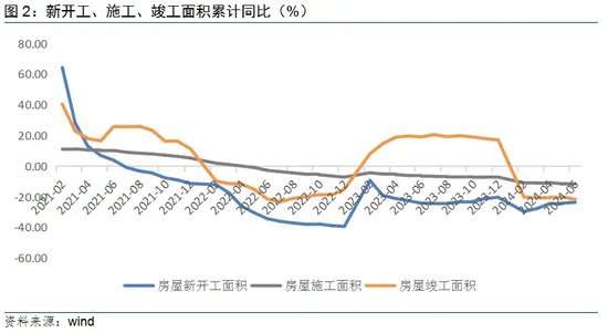 一季度,随着多项政策持续出台,各地保交楼加快推进,房地产开发投资完成额高于2023年四季度,随着政策持续落地,6月单月开发投资完成额突破1.1万亿元,实现环比增长22.59%。其中,三项面积方面,1-6月开工面积累计同比降幅收窄0.4个百分点,连续四个月降幅收窄。拉长时间轴看,房地产开发投资额处于2017年水平,且累计同比连续25个月为负;按时序进度,完成2023年的47.4%。由此可见,房地产开发投资仍处在历史低位和弱复苏阶段。