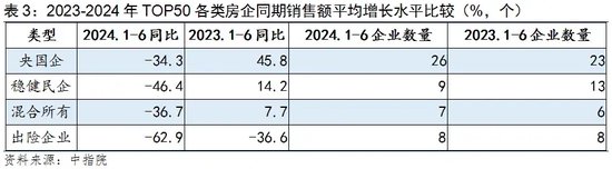 继2023年上半年百强房企销售额同比出现阶段高点后,经过10个月的连续下降,2024年2月出现探底回升、降幅收窄。受5·17政策影响,6月单月百强房企销售突破4000亿元,环比涨幅达到26.1%。但不论是与历年相比还是从各类型房企销售同比看,上半年均处在低位,我们判断当前房企销售仍在筑底过程中。由于去年销售“前高后低”基数的影响,预计下半年政策支持会加速发力,效果也将逐渐显现,房企销售降幅持续收窄,今年房企销售增速整体将呈现“前低后高”态势。