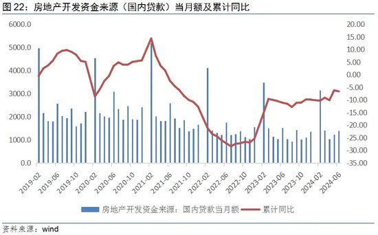 间接融资方面,2024年1-6月,房地产开发资金中,国内贷款总额为8207亿元,累计同比-6.6%,降幅比上月扩大0.4个百分点。但6月单月,国内贷款额为1397亿元,环比增长13.8%,实现连续三个月环比正增长。