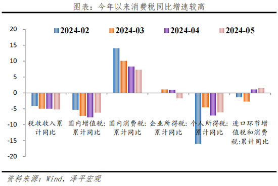 消费税的税收汲取能力优于其他税种。2023年国内消费税1.61万亿,占总税收的8.9%,且在2024年以来累计同比增速为正,1-5月累计同比增速7.2%,高于税收总体-5.1%的增速,远高于其他税种。消费税是当前可以改革并带来增量税收空间的税种。