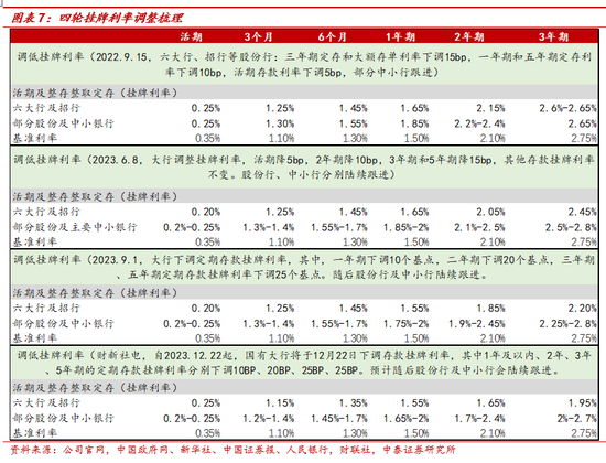 2022年5月和8月调降LPR——2022年9月大行下调挂牌利率,后续中小银行陆续补降;2023年6月8号下调存款挂牌利率,后续中小银行陆续补降。