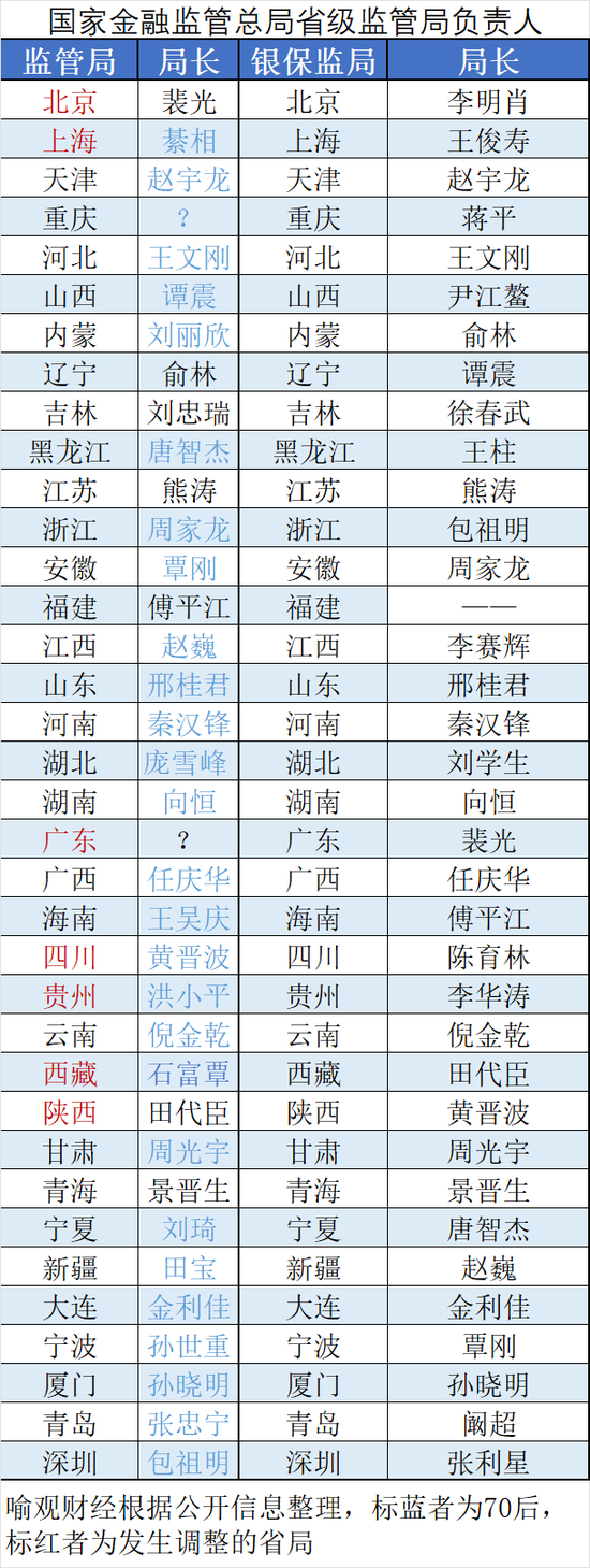 7月,金监总局36家省(自治区、直辖市)局的“三定”方案落定,省局一把手的调整仍在继续。