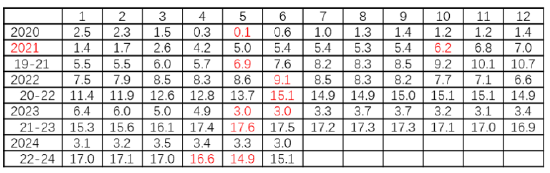 尽管美联储坚持以充分就业、温和通胀与金融稳定作为其货币政策主要目标,但长期看,其政策调整最主要的依据依然是通胀水平,包括CPI与核心CPI或PCE(Personal Consumption Expenditures)与核心PCE(The Core PCE Price Index)各月同比增长率,政策目标为2%。然而,由于2020年新冠疫情造成巨大冲击,其后很多国家各月通胀同比水平都出现了大幅波动,单纯以各月的同比增长率作为货币政策把握依据,就难免出现偏差。因此,正确的做法应该是以连续三年的各月同比增长率累计数作为依据,综合判断其变化情况,并以连续三年平均值保持2%作为理想水平。