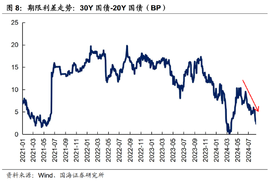 一方面,从期限利差的角度,当前30Y-20Y的利差已压缩至5BP以内,处于历史较低水平,且作为非关键期限品种,安全性相对更高。相对而言,20Y国债的收益率仍有下行空间。