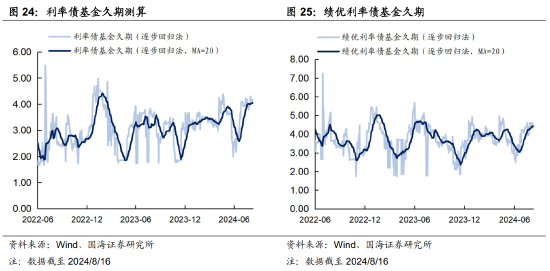 本周市场绩优和一般利率债基金久期测算值分别为4.05和4.41,较上周分别增加0.03和0.02。