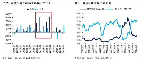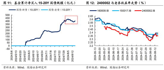 在5月29日新券2400002.IB上市后,在资产荒的影响下,基金对该券的净买入规模显著增加,但对老券仍然没有过多参与。也因此,与期限相近、相对活跃的老券160008.IB和150017.IB相比,新券的收益率相对更低,具有一定流动性溢价。
