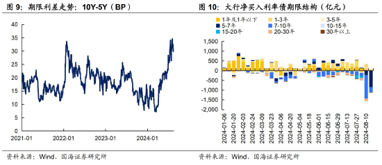 另一方面,若央行未来进一步加强对5Y、7Y国债的监管,那么市场对长端及超长端品种的需求会有所增加。二季度以来,央行对10Y国债利率的调控,导致5Y及7Y国债更受投资者关注,收益率出现快速下行,10Y-5Y、10Y-7Y期限利差均上升至高位。