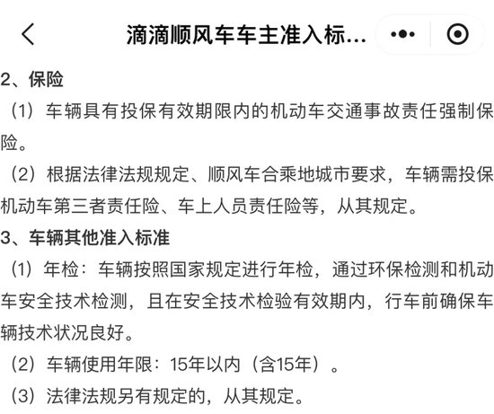 加入滴滴司机需要同意的《加入滴滴的条件说明和承诺》一文中,仅要求投保交强险:“二、从事网约车经营的车辆,应当符合以下条件:……5.车辆已投保有效的机动车交通事故责任强制保险,各地方实施的法律法规另有规定的,从其规定。……”