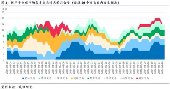 从近期的市场情况看,在8月初日元套息交易和美国偏弱的非农数据公布后,上半年一度盛行的通胀交易基本消失,宽松交易和衰退交易成为主要交易模式,避险交易也有所增多。