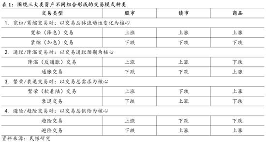 宽松(降息)交易。交易逻辑是全球主要央行(特别是美联储)货币政策转向宽松的预期增加,或转向紧缩的预期下降,促进整体流动性边际改善。在资产表现来看,对应股市、债市和商品同时上涨。