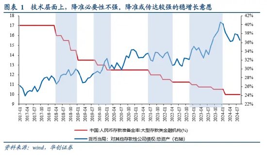 从降准来看,结合我们前期报告《M1同比回落的归因拆分》,当下降准的必要性其实不强。背后原因在于,历史经验上,降准通常发生在央行资产负债表对其他存款性公司债权占总资产比重走高期间。这背后逻辑在于,降准本质上是流动性管理工具,而央行对其他存款性公司债权是央行投放的再贷款的存量。过往央行都是在再贷款投放规模过大(对应占总资产比重较高期间)进行降准操作。而当下央行再贷款投放规模并未明显增长的情境下降准,这可能意味着政策层面推动信用扩张的稳增长意愿相对较强。