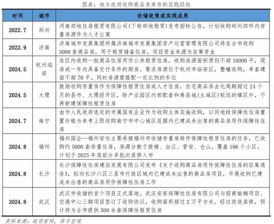 地方政府陆续出台政策盘活存量住房、推进去库存。地方政府回购商品房政策出台的时间节点多是库存高企、去化困难时期。2014年,多地曾试点政府回购商品房充当安置房。2022年7月,郑地租赁收购郑州四环内存量房源作为人才公寓;10月,苏州对6个区及4个县市回购约1万套新房;湖州、邯郸、阿勒泰等城市也发布政策鼓励将存量房源转化为保租房。自 517 央行首次提出 3000 亿保障性住房贷款收储去库以来,当前全国约60城表态支持国有企业收购存量商品房用作保障性住房。其中,郑州、济南、重庆、福州、青岛、天津、武汉、长春更是公布已完成收储甚至已转化为保障房投入运营。