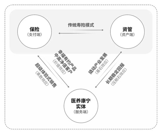 现在泰康以保险、资管、医养三大业务板块为基础,构建“支付+服务+投资”三端协同的新寿险。“支付+服务+投资”三端协同的基础,对应着三大核心能力:支付对应着销售能力,服务对应从传统的保险保障服务到与医养结合的全生命周期的服务体系与能力;投资对应的就是长期复利能力。