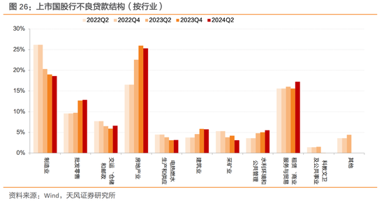 参考中信银行披露,“截至报告期末,本集团公司不良贷款主要集中在制造业、房地产业、租赁和商业服务业三个行业,不良贷款余额占公司不良贷款总额的62.06%。报告期内,受宏观经济环境、行业风险等因素影响,本集团租赁和商业服务业、批发和零售业等不良贷款余额较上年末有所上升。“