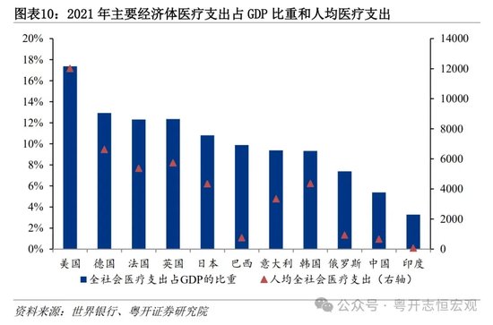 二、国际差距:总量高但人均指标不高、医疗教育领域差距较大
