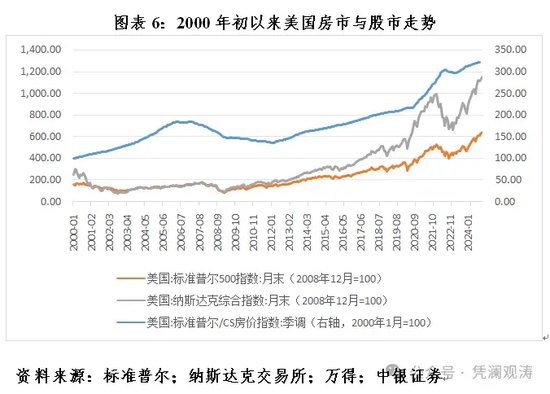 2008年金融危机和2020年公共卫生危机应对,美联储均采取了QE操作。在长期宽流动性、低利率环境下,美国房市和股市都录得了可观的涨幅。2009年初至2023年底,美国标普/CS房价指数累计上涨1.05倍;标普500指数累计上涨4.28倍,纳斯达克综指更是累计上涨8.52倍。