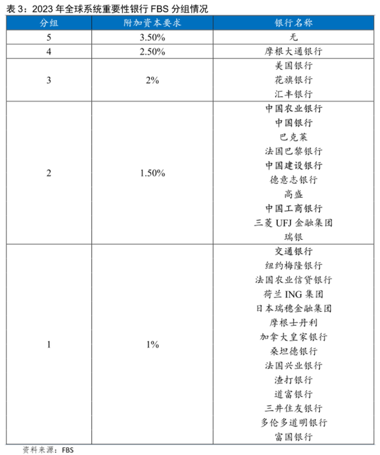 根据FSB发布的2023年全球系统重要性银行名单,工农中建四大行位列第二组,附加资本要求为1.5%;交行位列第一组,附加资本要求为1%。邮储银行由于仅是全国系统重要性银行,附加资本的要求为0.5%。由此可以得出工商银行、农业银行、中国银行、建设银行、交通银行和邮储银行的核心一级资本充足率较监管最低要求的差距分别为4.84%、2.13%、3.03%、5.01%、1.80%和1.28%。可见农业银行、交通银行和邮储银行的核心一级资本充足率较监管最低要求较为接近,补充资本的必要性更强。