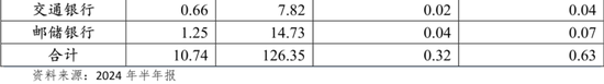 首先,国有大型银行中的农业银行、交通银行和邮储银行,具有补充核心一级资本的需求。根据国有大型银行2024年半年报数据可知,农业银行、交通银行和邮储银行的核心一级资本充足率分别为11.1%、10.3%和9.3%,虽然较《商业银行资本管理办法》的最低要求5%高出不少,但在考虑了储备资本2.5%和系统重要性银行附加资本后,可能存在补充资本的需求。