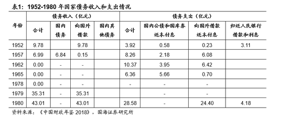 1980年之前,经济发展基本不举债。建国初期,中央政府仅发行过“人民胜利折实公债”和“经济建设公债”6次公债。到1968年底,中国实现既无内债、又无外债的状态,并一直持续到1978年。