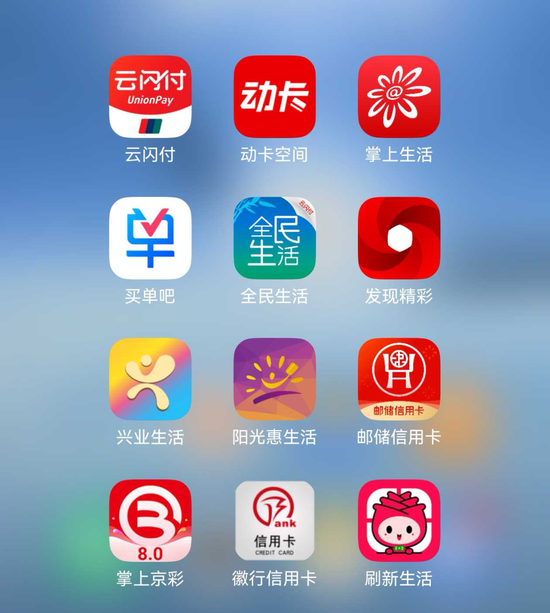 目前有中国银联云闪付APP,以及国有银行中的交行、邮储,股份制银行中的招行、中信、广发、光大、民生、兴业等银行,北京、徽商等城商行均完成了专属信用卡APP适配上线,其它包括工行、建行、中行、农行、平安等银行的信用卡业务整合在手机银行APP中。