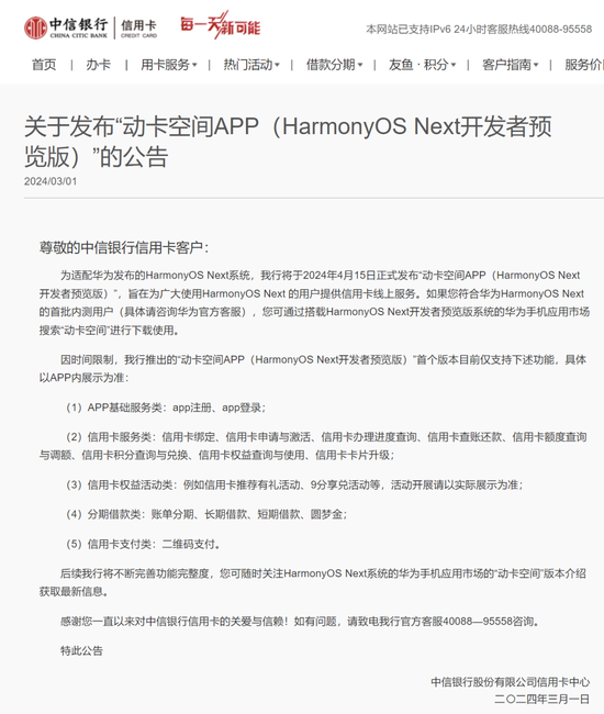 信用卡领域对HarmonyOS NEXT 5.0系统的应用的积极响应,也为信用卡用户提供新的服务体验。