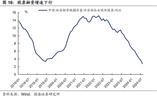 受到IPO监管趋严影响,今年股票融资增速持续下行,我们预计2025年IPO严监管仍持续存在,但在股市行情回暖、成交量大增背景下,股票融资增速有望上行,全年融资增速预计为3.5%。
