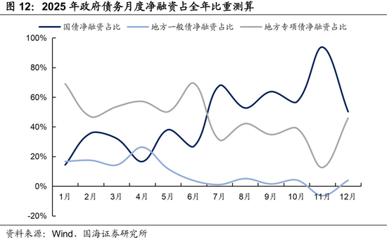 参考2019-2022年国债和地方债发行节奏作为参考,我们预估2025年政府债务发行节奏如图12所示。