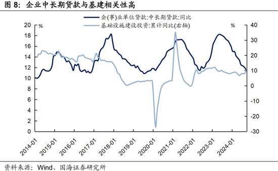 企业中长期贷款与基建板块相关度高。在财政加力、逆周期调节背景下,2025年基建投资增速有望上行,带动企业中长期贷款增速回升。假设乐观预期下,企业中长期贷款增速回升至13%;悲观预期下,企业中长期贷款增速回升至12%。