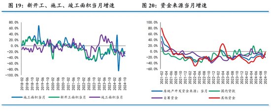 1-10月房地产开发投资同比-10.3%,较1-9月小幅扩大0.2个百分点。我们测算的10月当月同比增速为-12.3%,为今年以来的最大降幅。虽然市场成交量略有回稳,但房企拿地开工的意愿仍然不足。