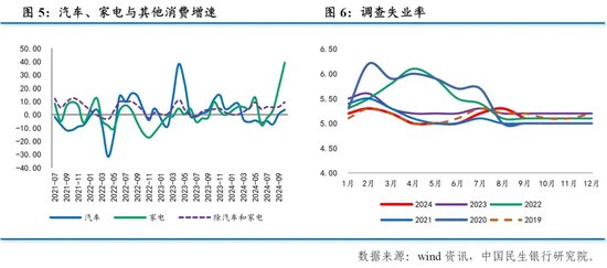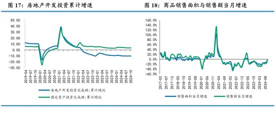 除了政策外,就业和财产性收入改善也对消费产生积极效果。10月份,全国城镇调查失业率为5.0%,较上月下降0.1个百分点,连续两个月下降,与上年同期持平。此外,10月以来,存量房贷利率下调降低了居民还款支出,房地产市场和资本市场初步企稳,也有助于促进居民消费。
