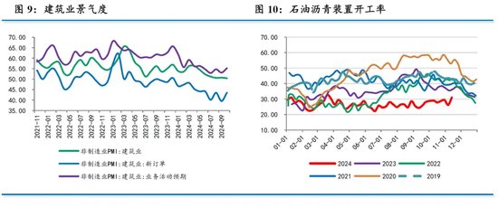 从佐证指标看,10月建筑业商务活动指数为50.4%,比上月回落0.3个百分点,但新订单、业务活动预期指数均出现反弹,土木工程建筑业商务活动指数也升至55.0%以上的较高景气区间。此外,10月沥青装置开工率较上月小幅回升,显示基建活跃度有所提升。